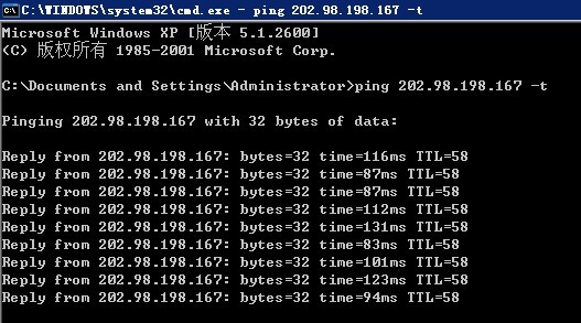 如果您是网通玩家,请输入 ping 58.16.166.113 -t 然后回车